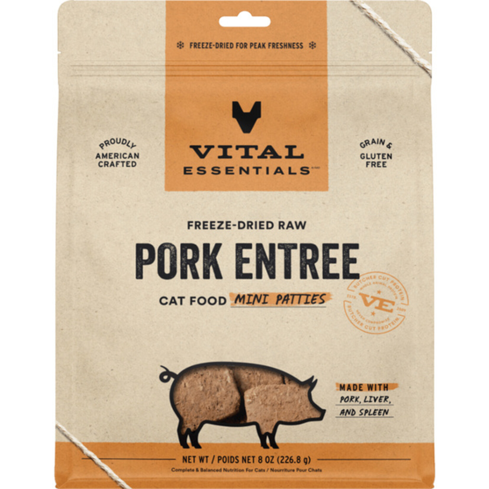 Vital Essentials FD Raw Pork Mini Patties Entree Cat Food 8 oz