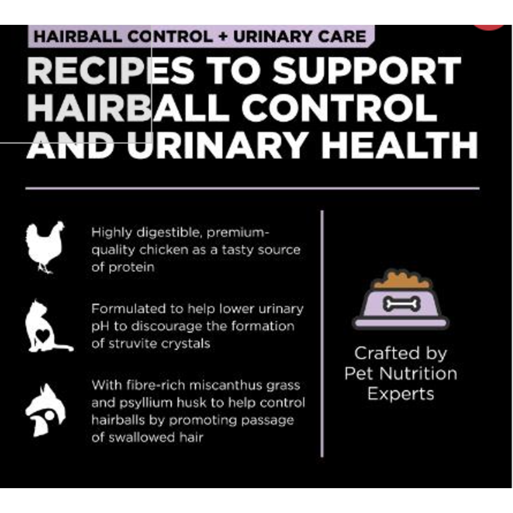 Manage hairballs and support your cat's urinary tract health with Go! Solutions Hairball Control + Urinary Care cat food. Formulated with a Board-Certified Veterinary Nutritionist® to help lower and control urinary pH to discourage the formation of struvite crystals. Crafted with high-fibre miscanthus grass to help your cat pass hairballs